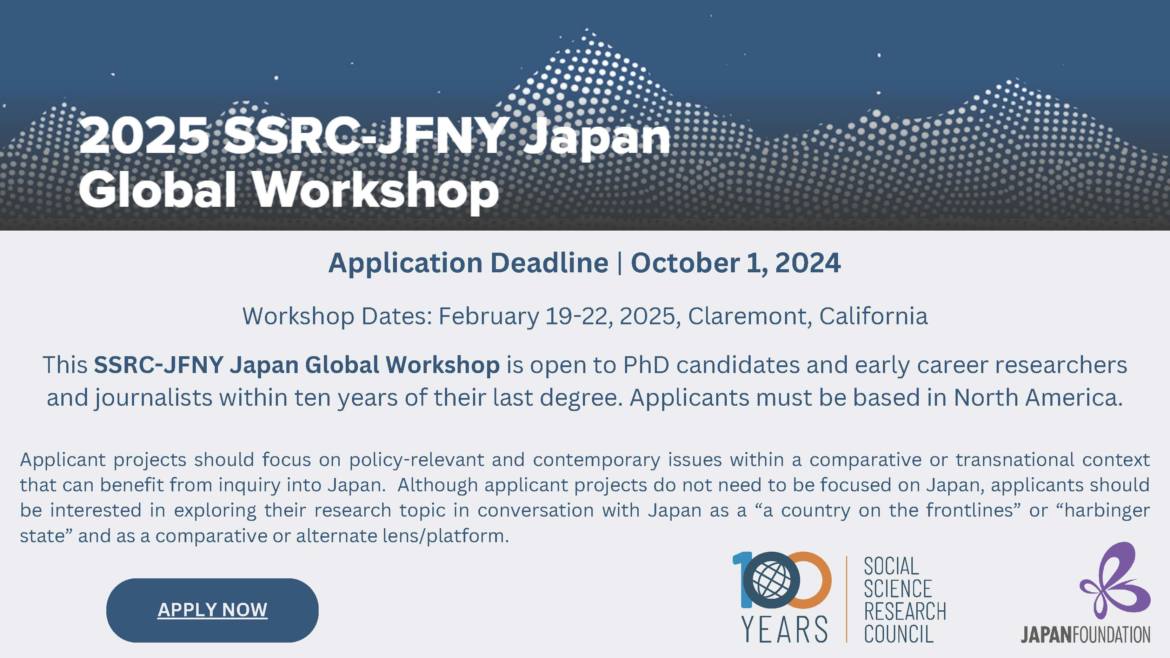 Please see the program website for guidelines and information on how to apply: 2025 SSRC-JFNY Japan Global Workshop