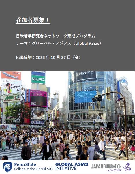 We teamed up with the Global Asias Initiative (GAI) at Pennsylvania State University and launched a new project to cultivating Early Career Networks in Japan and the U.S. between Global Asias and Japanese Studies program. The application deadline is October 27, 2023. For call and submission instructions see attached or visit;