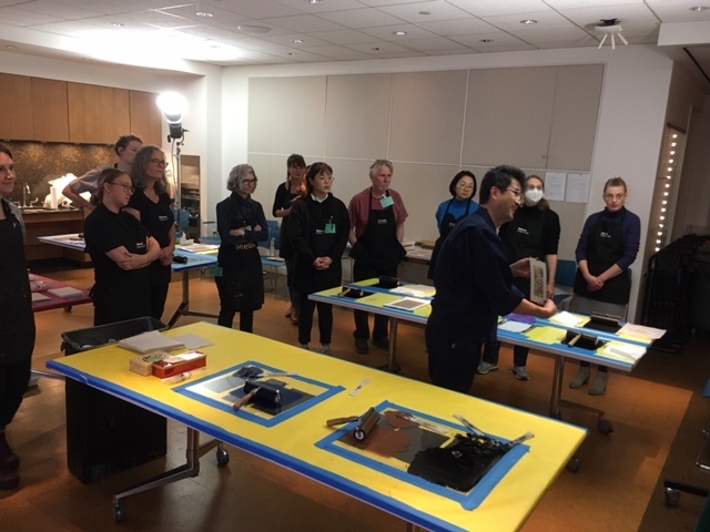 The Collotype Printing workshops allowed 24 participants to learn from a collotype master printer from the world’s only remaining commercial producer of color collotypes. Registration for the workshops quickly filled to capacity and were a huge success, thanks in part to the Japan Foundation’s generous grant. The workshop was held twice, on the first and last days of Foundation for Advancement in Conservation’s week-long program, Photomechanical Prints: History, Technology, Aesthetics, and Use, in Washington, D.C. the week of October 30th – November 3rd, 2023. The symposium that took place between the workshops was completely sold out, with 200 people overall in attendance, including people engaging with photomechanical materials in a variety of capacities such as conservators, curators, historians, educators, art dealers, and students.