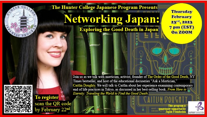 The Hunter College Japanese Program Presents Networking Japan: Exploring the Good Death in Japan. This is part of the Networking Japan: Career Development Series.